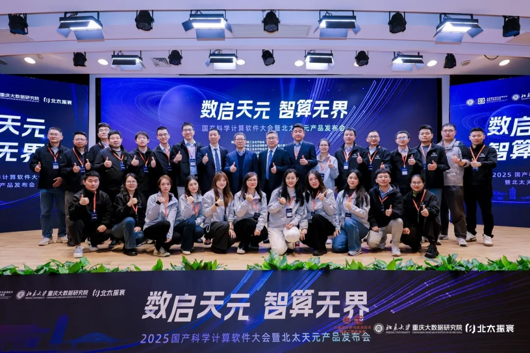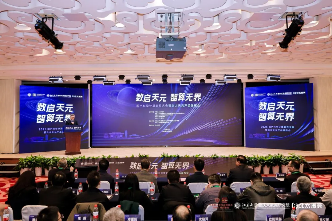 11月15日,“数启天元,智算无界”2025国产科学计算软件大会暨北太天元产品发布会在北大博雅国际酒店盛大举行。本次大会在中国工业合作协会、中国工业与应用数学学会高性能计算与数学软件专业委员会、中国工业合作协会仿真技术产业分会、北京大学科技开发部、北京大学计算中心的共同指导下,由北京大学大数据分析与应用技术国家工程实验室、北京大学重庆大数据研究院(以下简称“研究院”)联合主办,北太振寰承办。政府嘉宾、多位院士、高校专家、行业领袖齐聚一堂,共绘国产科学计算软件发展蓝图,共同见证北太天元2025新版本发布这一行业盛事。